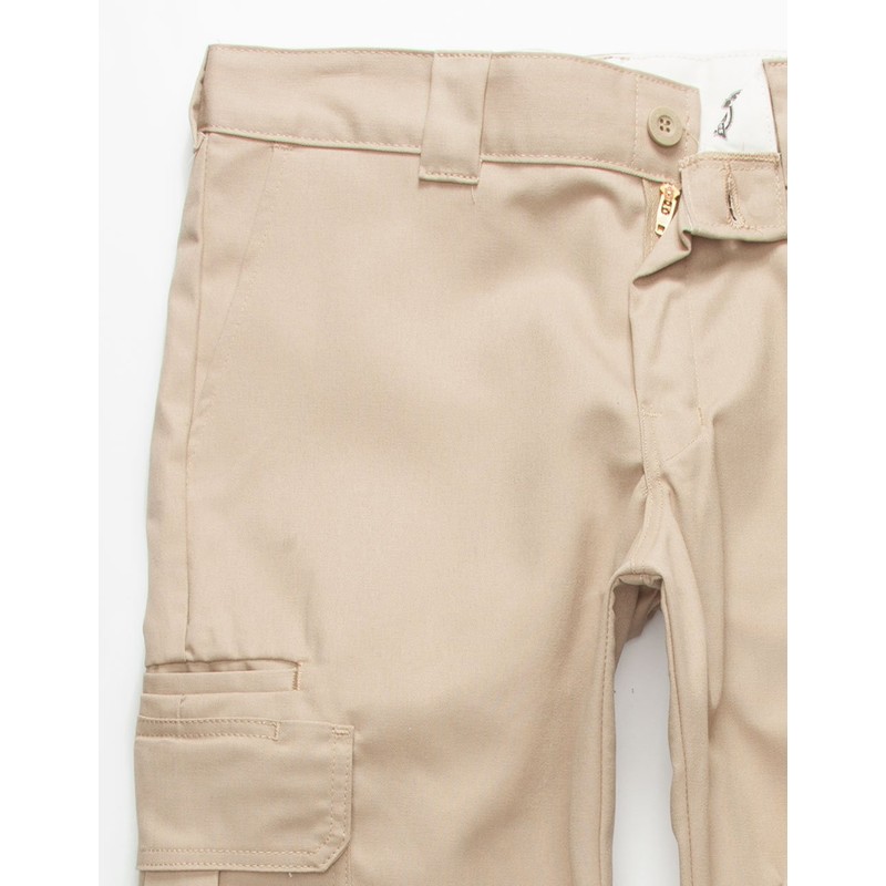- Wrinkle-resistant twill pant featuring side cargo pockets, side-seam pockets, and welted back pockets