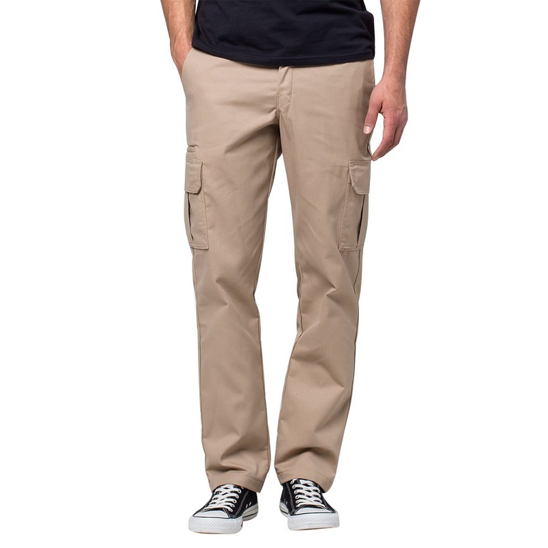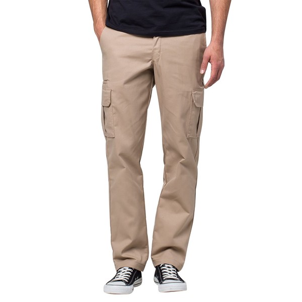 Dickies Mens Slim-Straight Stretch-Twill Cargo Work Utility Pants, Desert Sand, 28W x 32L US