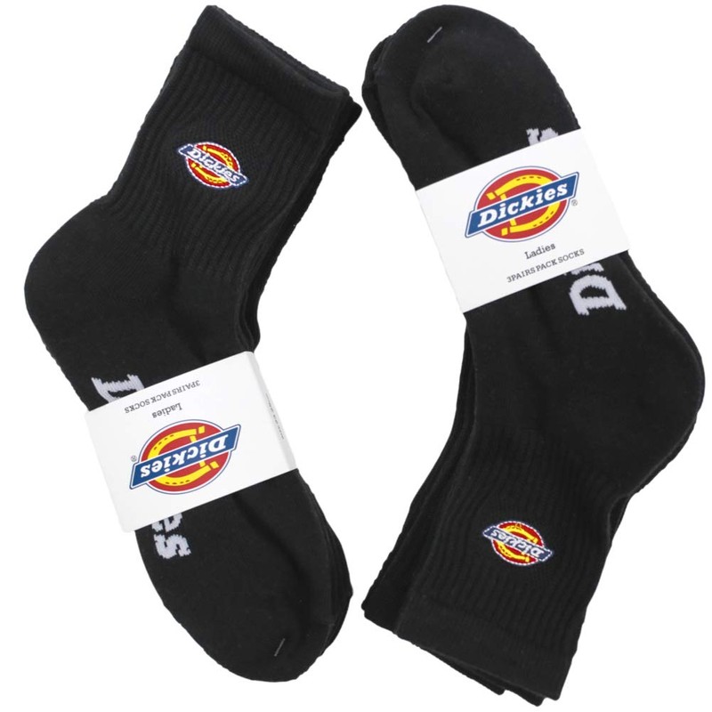 Dickies Socks - 3 Pack - 3 Pack - Embroidered Logo - Bottom Pile Crew Socks, White, Black, 3-Pack, Women's Black 3 Pair Set