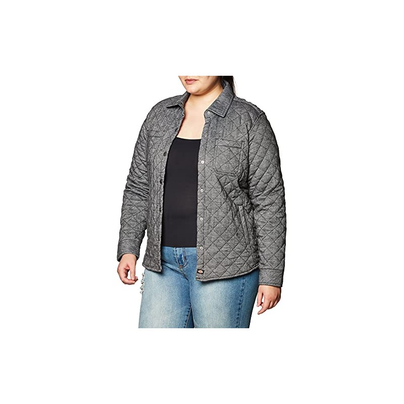 Dickies Women's Quilted Flannel Shirt Jacket, Gray Two Tone Herringbone, Small