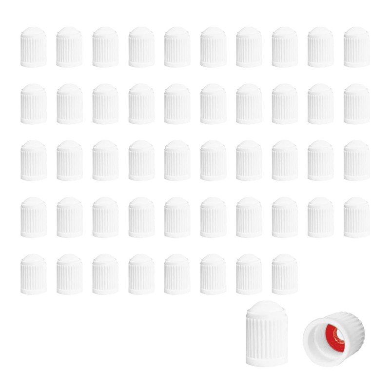 Dickno 50PCS Car Tire Valve Stem Caps, Dustproof Plastic Auto Tyre Valve Cap Set with O Rubber Ring, Airtight Seal Wheel Stem Cover for SUV Bicycle Truck, Universal Car Accessories (White)