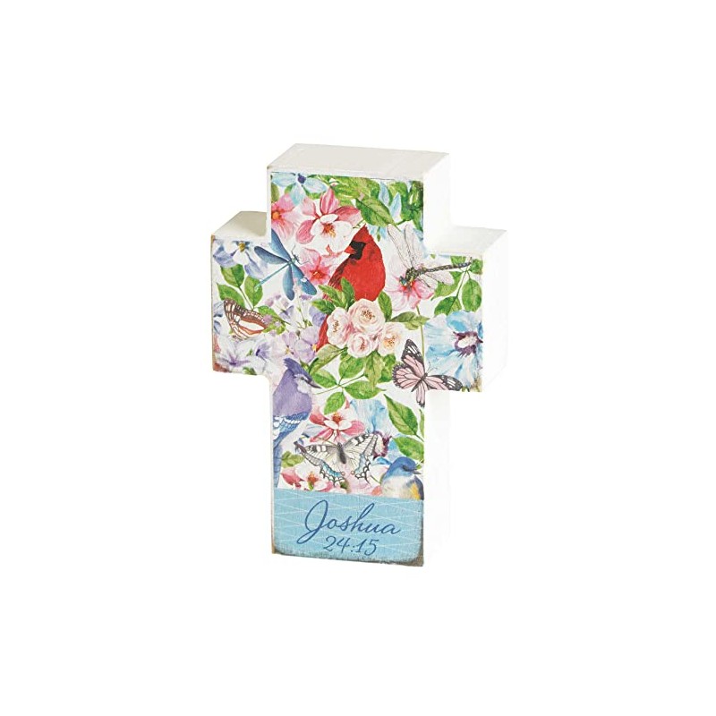 Dicksons Joshua 24:15 Floral Red Cardinal 4 inch MDF Table Top Cross