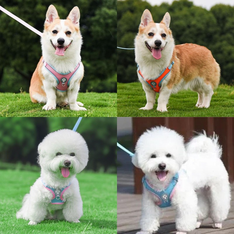 - ADJUSTABLE & STYLISH SET: Adjustable dog harness fits most breeds. Fits a wide variety of dogs, from small to medium dogs. The neck and chest circumference can be adjusted in total of 4 places, allowing you to freely fit your dog's size. Pair it with our leash to add style to your dog!