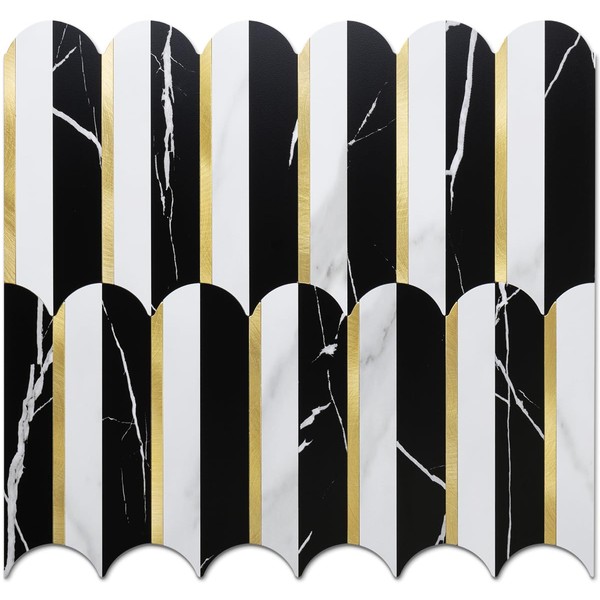 DICOFUN 1 Sheet Black & White Peel and Stick Backsplash for Kitchen, PVC Stick on Backsplash Wall Tile