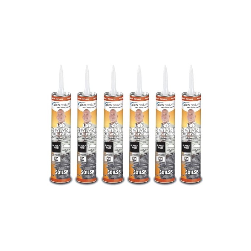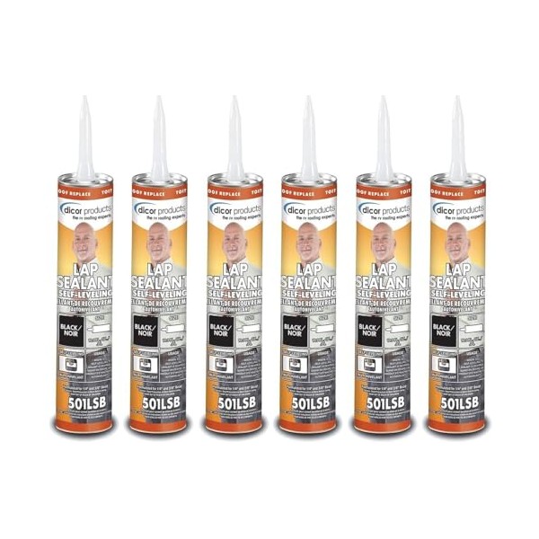 Dicor 501LSB-1, Self-Leveling Lap Sealant, RV Roof and Repair, Black, 10.3 OZ Tube, Pack of 6