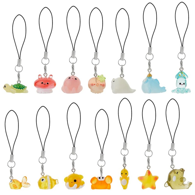 DICOSMETIC 14Pcs Resin Mobile Straps, Marine Theme, Mixed Color