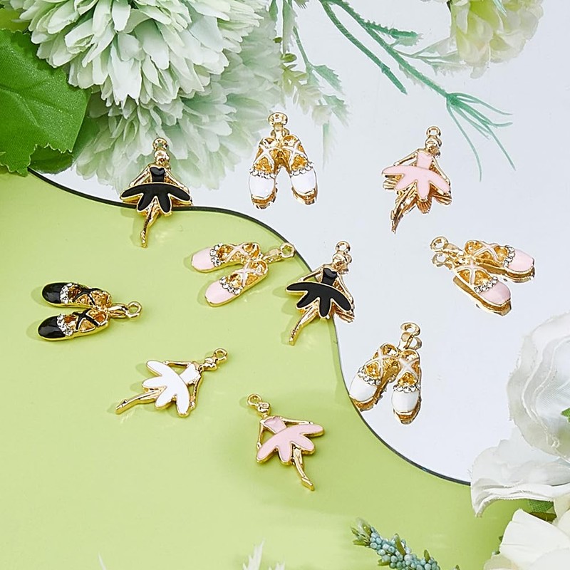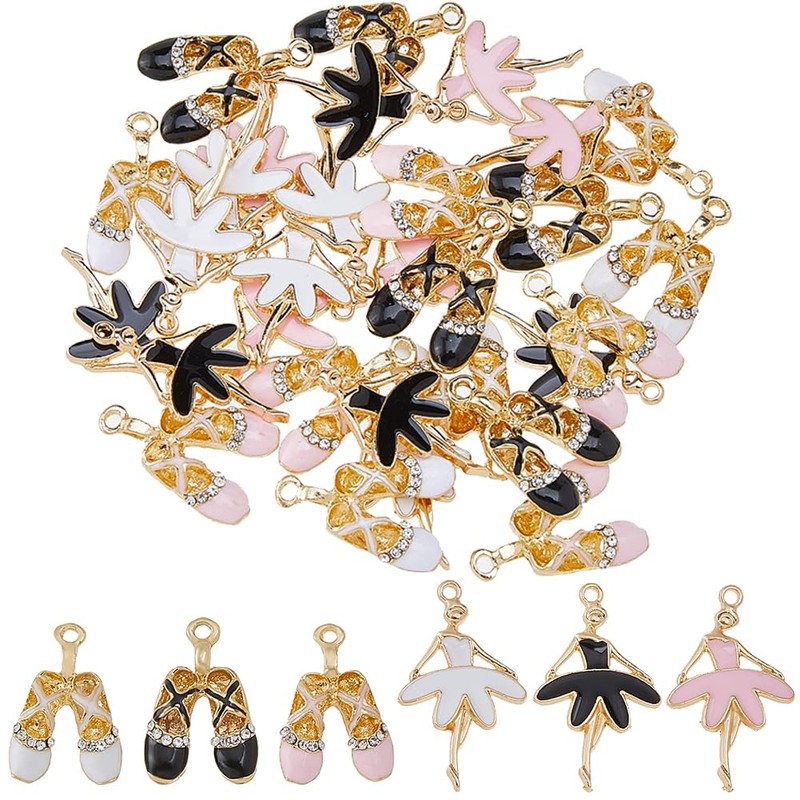 DICOSMETIC 36Pcs 6 Styles Ballet Dancer Charms Rhinestone Ballet Shoes Charms Alloy Enamel Ballerina Charm Dancing Shoe Charm for Necklace Bracelet Jewelry Making, Hole: 1.8-2mm, Alloy Rhinestone+