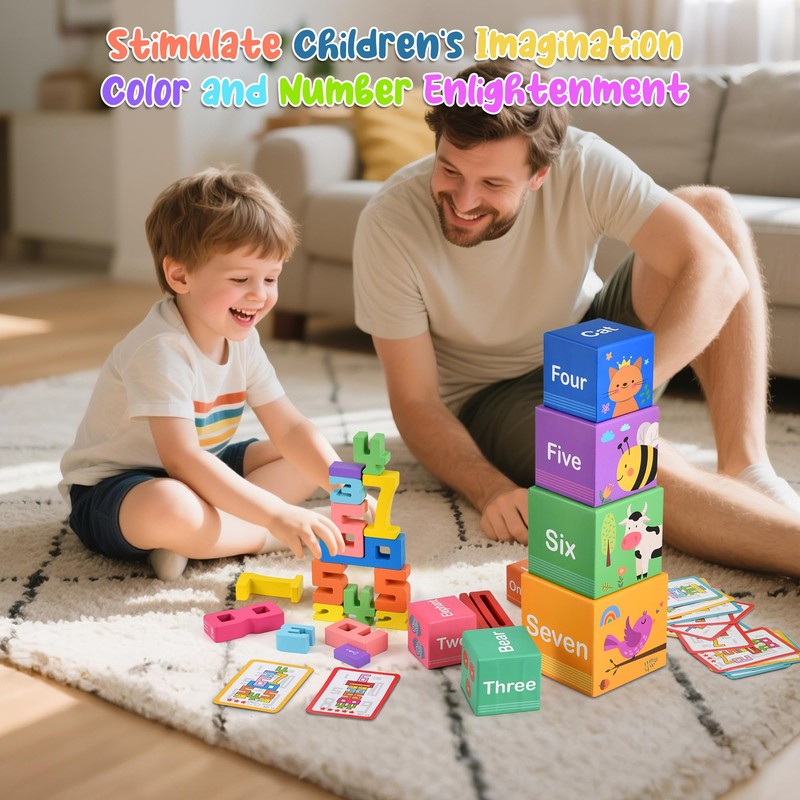 - ✅ 【Durable & Child-Safe Design】- This educational set features number building blocks (solid wood) and nesting blocks (compressed cardboard), including number stacking toys for creative play. All pieces have smooth surfaces and rounded corners, ensuring 100% safety for toddlers.
