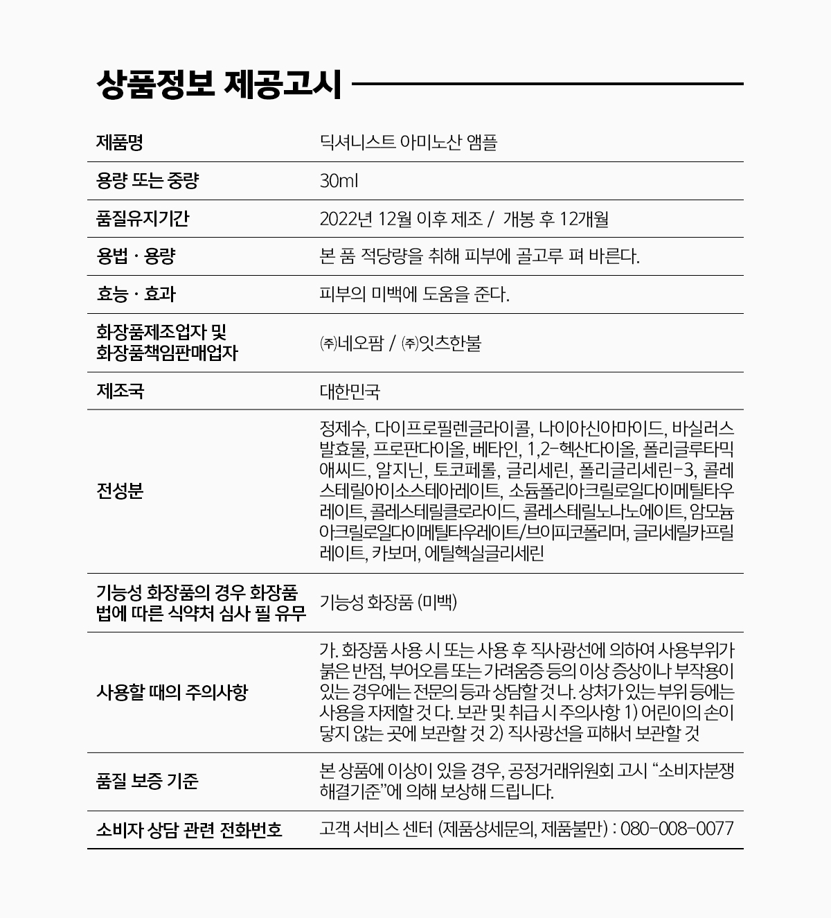 Dictionary Amino Acid Ampoule 30ml _Y / 딕셔니스트 아미노산 앰플 30ml Y
