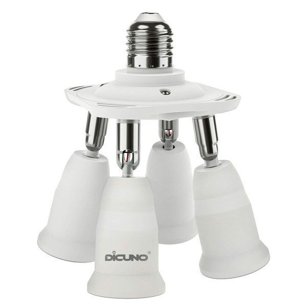 DiCuno 3 / 4 / 5 in 1 E27 Socket Splitter Adapter, E27 to E27 Socket Converter, E27 Splitter, E27 Lamp Socket, with 360 Degree Adjustable, 180 Degree Bending