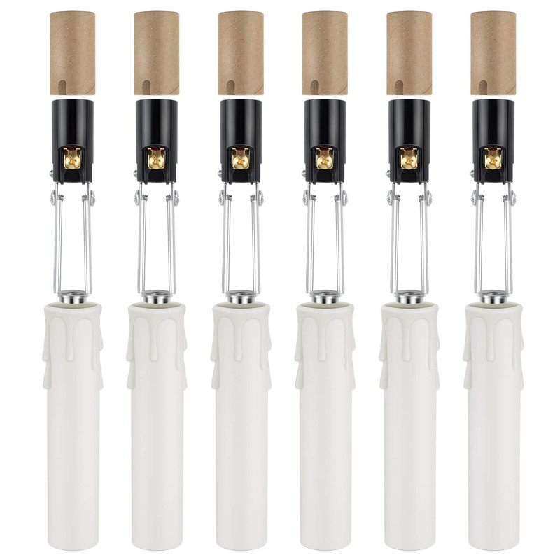 DiCUNO E12 Length Adjustable Bulb Socket, Candelabra Base Bulb Holder with Cardboard Insulator and Plastic Candle Cover Sleeves, 6-Pack
