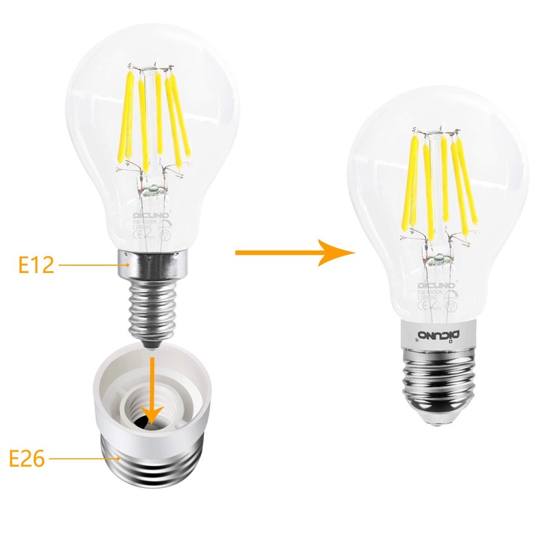 DiCUNO E26 to E12 Base Conversion Adapter, Bulb Socket, Flame Retardant Material, 200W Maximum Work Ratio, Heat Resistant to 165 Degrees, Set of 6