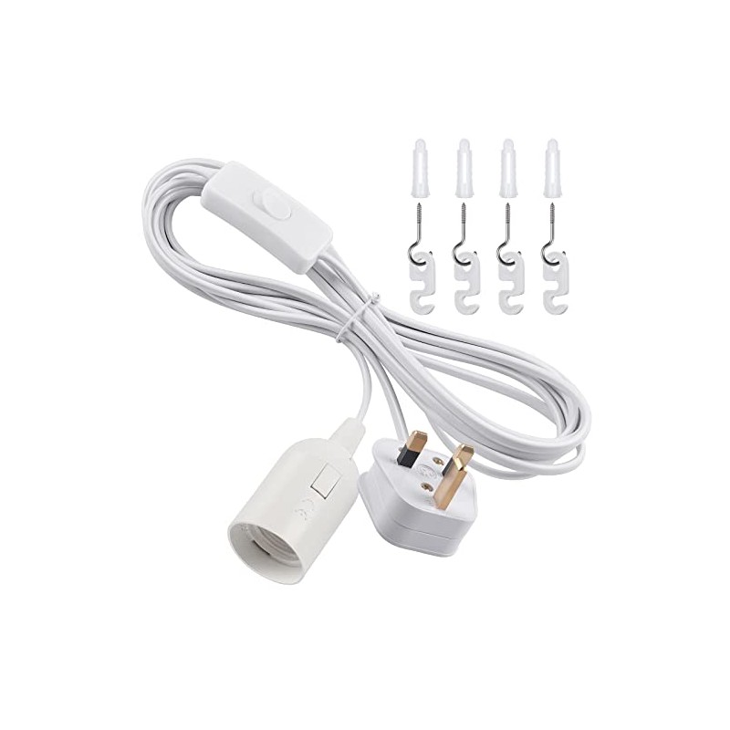 DiCUNO E27 Lampholder, Pendant Light Ceiling Lighting Fitting, Suspended Pendant Light Fitting Kit, White, 4M, 1Pack