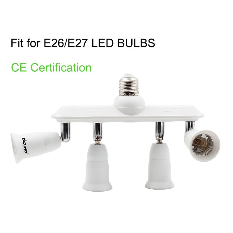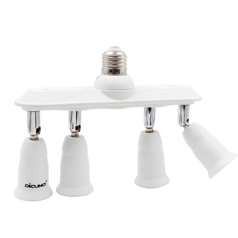 DiCUNO Light Socket Splitter 4 Way Adapter, 4 in 1 E26 Socket Converter, Bulb Lamp Horizontal Designed 360 Degrees Adjustable 180 Degrees Bending