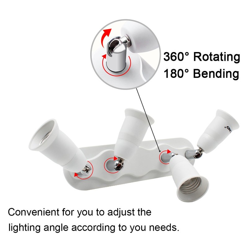 - This splitter adapter is horizontal designed. Each socket is 360° rotating and 180° bending available, convenient for you to adjust the lighting angle according to you needs.