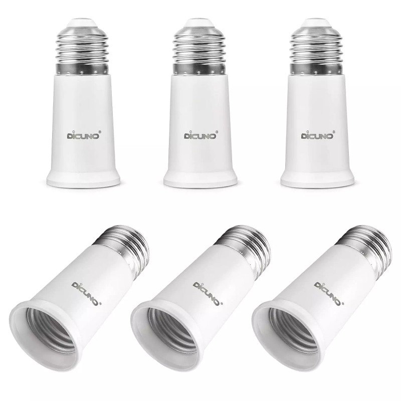 DiCUNO Socket Extender Extension Adapter Max 200W Light Bulb Extender Light Bulb 6 Pcs