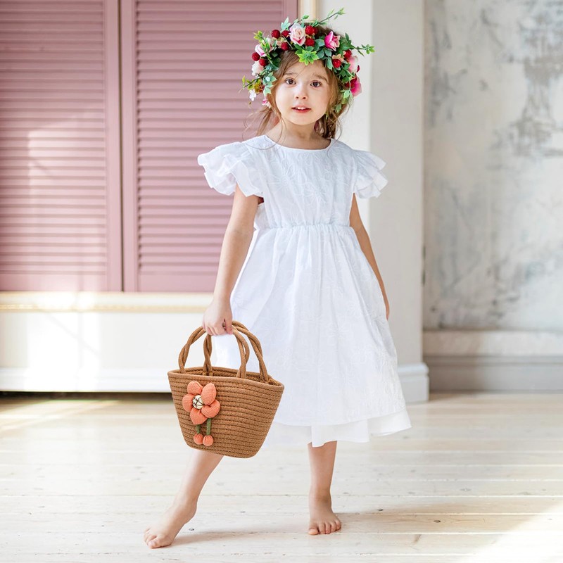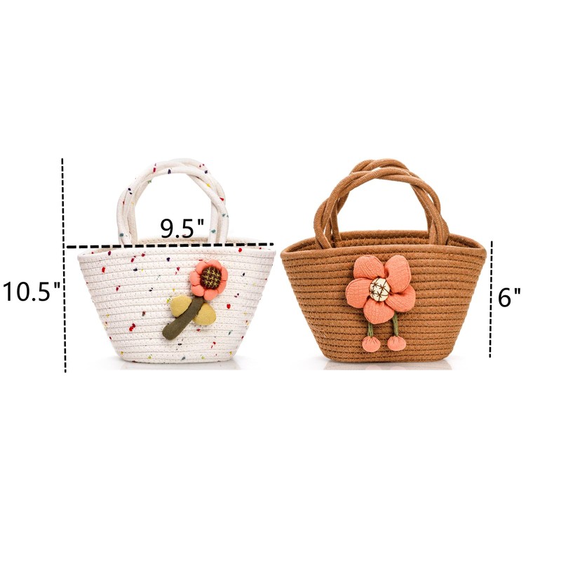 Dicunoy 2 PCS Little Girls Purses, Small Flower Handbags with Handles, Cute Cotton Woven Beach Boho Bags for Toddler, Princess, Outdoor Activities, Gift