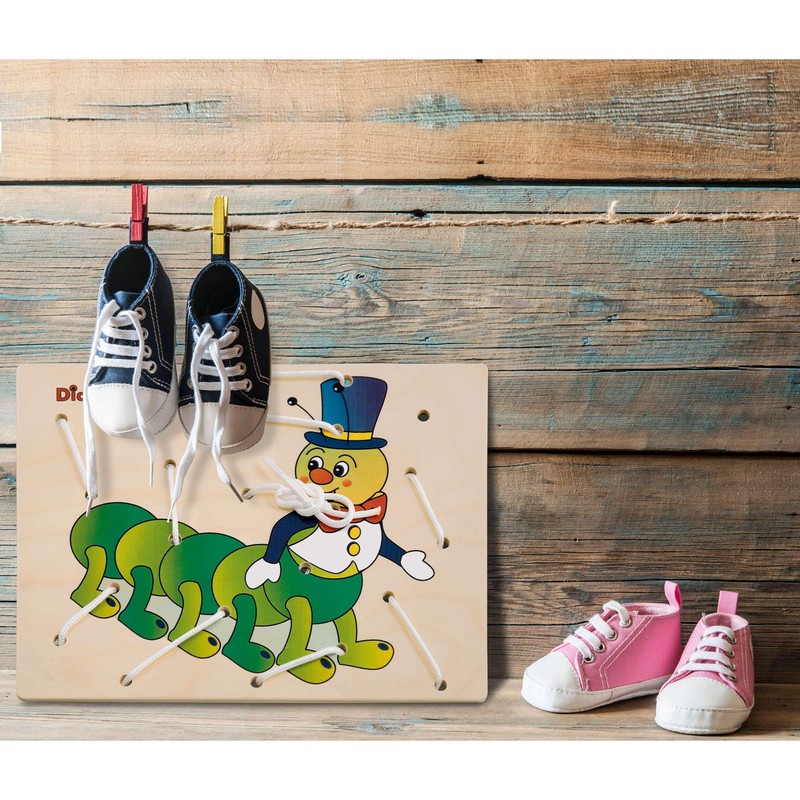 Dida - Caterpillar Lacing Game - The Threading Game with Laces to Promote Children's Fine Motor Skills - Montessori Activities for Nurseries and Preschools