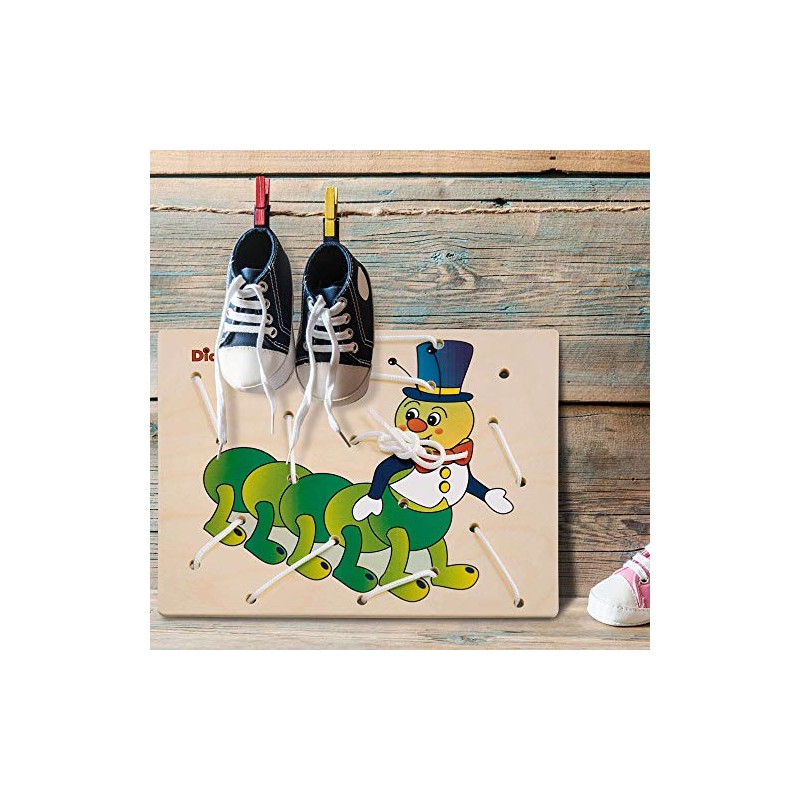 Dida - Caterpillar Lacing Game - The Threading Game with Laces to Promote Children's Fine Motor Skills - Montessori Activities for Nurseries and Preschools