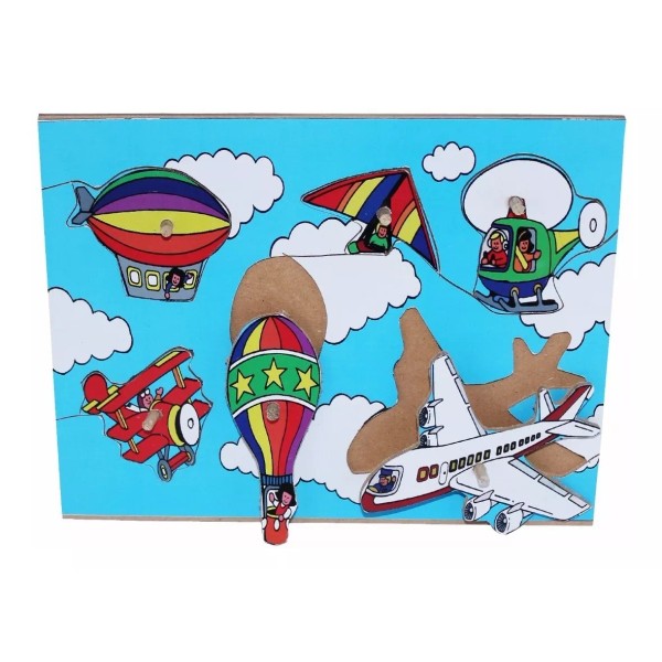 Rompecabezas didáctico con pija de transportes fabricado en MDF (madera), tamaño 26cm x 20 cm x 2cm, este material didáctico es ideal para fomentar la concentración, reflexión, desarrolla la coordinación mano ojo, etc