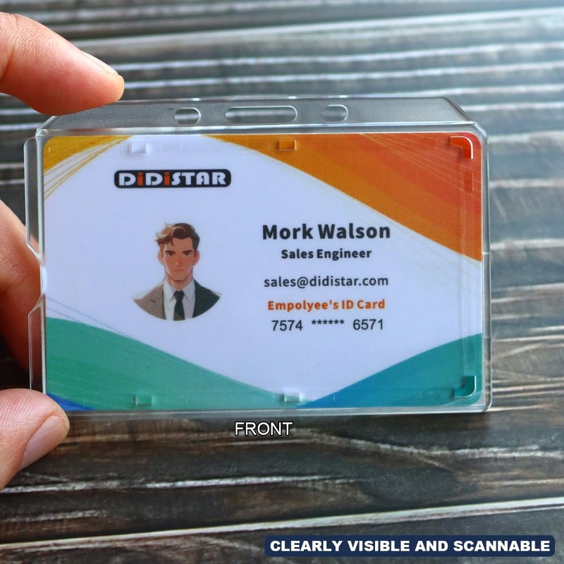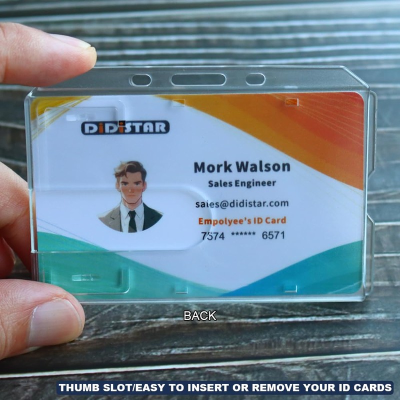 DiDiSTAR is devoted to School & Office supplies, Especially in hard shell sliding ID card holder for badges, Retractable badge reels, ID badge Clip, ID badge breakaway lanyards and etc. Conbination of convenient and well-designed thumb slot opening badge holder allows for easy access to insert or quick removal of your hospital nurse badge,hotel keycard, cruise card,exhibition card,event pass, student I'd, car park, bus pass, membership card, and more for swiping as often as needed. Easy to scan and easy access through the clear cover with transparent visibility. The top chain holes and slot-punched allow you to securely and firmly attach to keychain ring,lanyard clips, neck chains or retractable badge reels, ensuring it stays in place throughout your workday. This card holder caters to diverse needs,Whether you're a factory worker, student, police officer, landloard, office staff, employee, doctor, nurse, x-ray tech, police officer, teacher, airline employee or government office worker. The integrated designs of sturdy,reliable,durable and lightweight for ID badge card protector is professional and stylish,which is very outfitting for kids,women and men, no matter whether from the classroom to the office, from the hospical to government sectors. Easy-to-use indentification protection always goes with you. Crafted from the premium products and designs will bring you unique experiences and ultrimate in conveniences at work or in life Go YOUR HANDS Free.