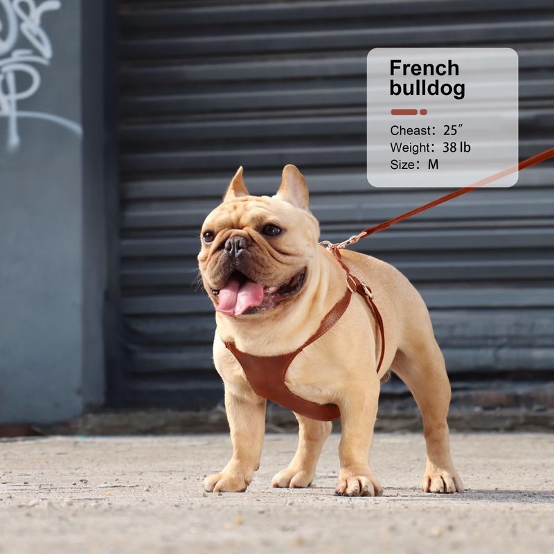 Didog No Pull Dog Harness for Small Dogs, Soft & Lightweight Small Dog Harness and Leash Set, Durable & Adjustable Leather Dog Harness Medium Size Dog, Brown, M