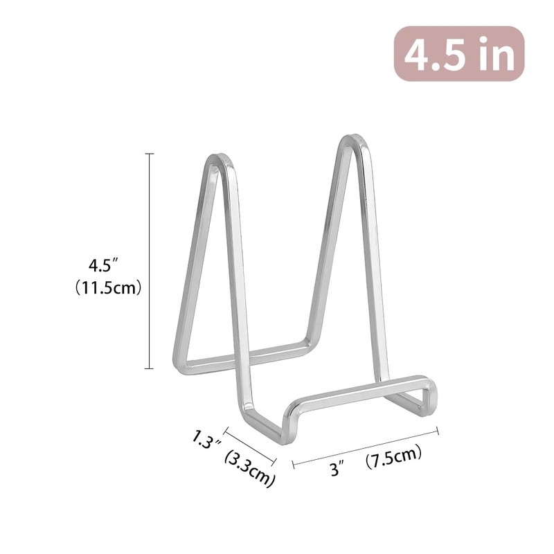 DIDUDIDU Plate Holder Easel Display Stand - 4.5 inch Metal Plate Stands for Display - Tabletop Picture Stand - Silver Iron Easels for Display Pictures