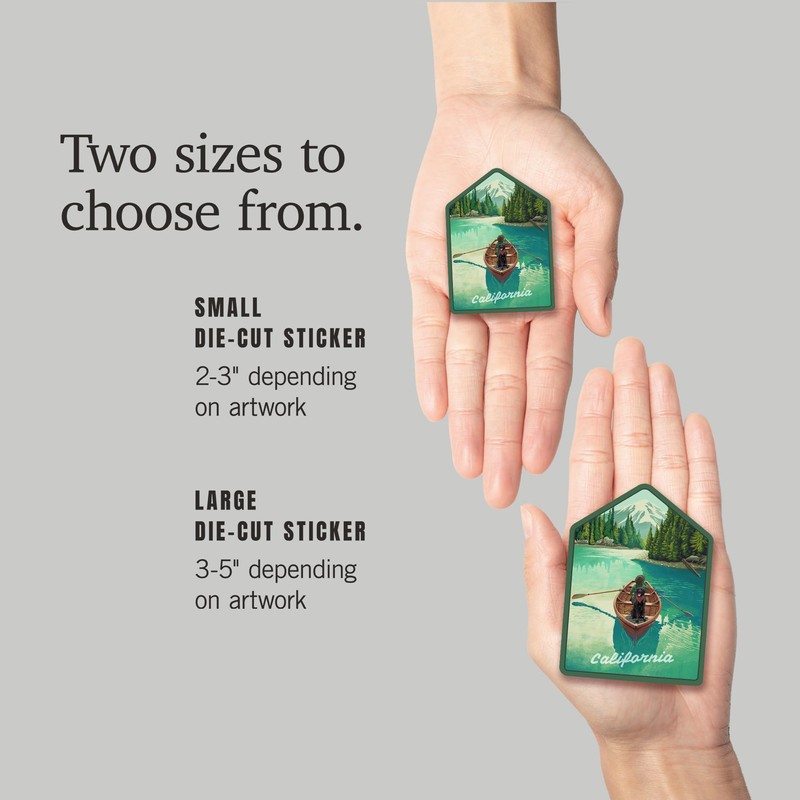 - Die Cut Sticker California, Quiet Explorer, Boating, Mountain, Vinyl Sticker 3 to 6 inches, (Waterproof Decal for Cars, Water Bottles, Laptops, Coolers), Large, Intended for permanent placement.