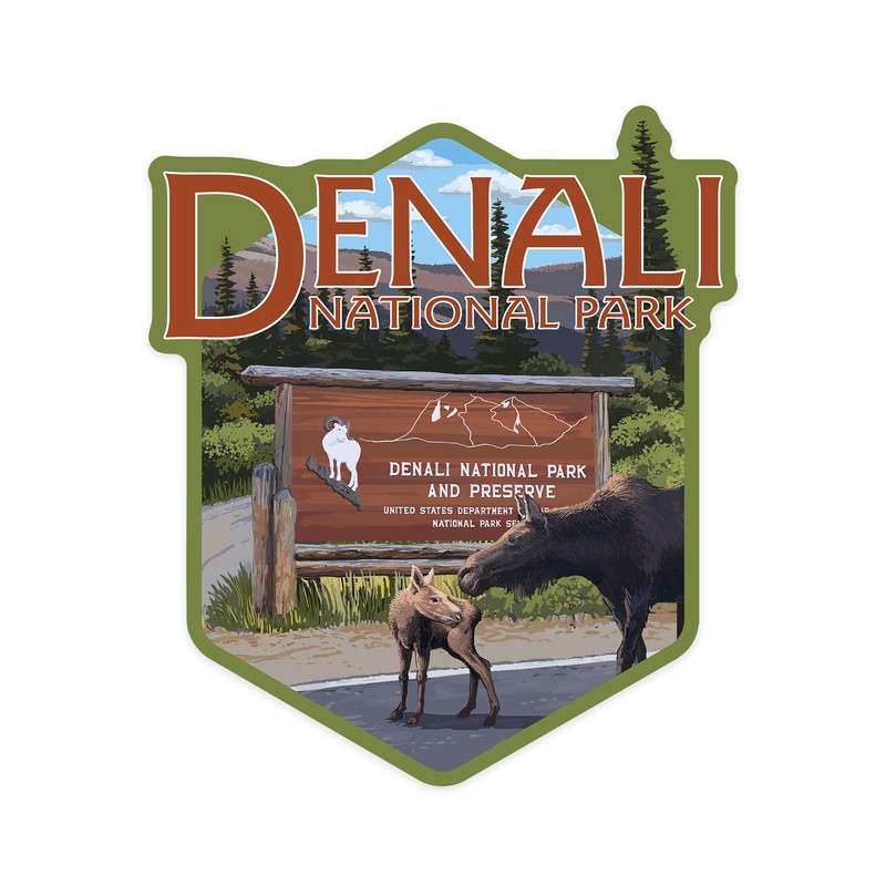 This original high-quality, small vinyl die cut sticker from Lantern Press boasts sharp detail and vivid imagery of Die Cut Sticker Denali National Park, Alaska, Park Entrance, Contour Vinyl Sticker 1 to 3 inches (Waterproof Decal for Cars, Water Bottles, Laptops, Coolers), Small.