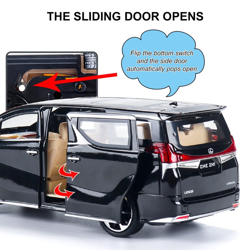 2.Please unplug the insulation sheet at the battery under the bottom of the model car before use, otherwise there will be no light and sound when opening the door.