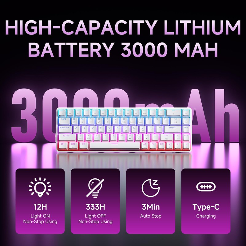 - 【Powerful 3000mAh Battery with Smart Power Saving】Get up to 12 hours of continuous use with backlighting on, and an impressive 333 hours with lighting off. Auto-sleep mode activates after 3 minutes of inactivity to conserve power for extended use.