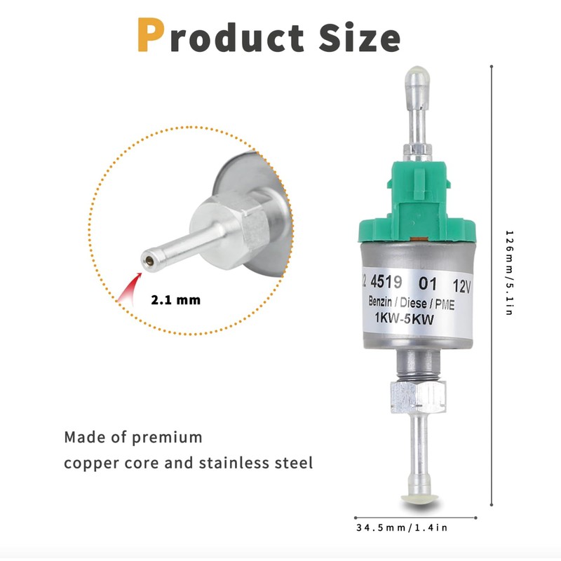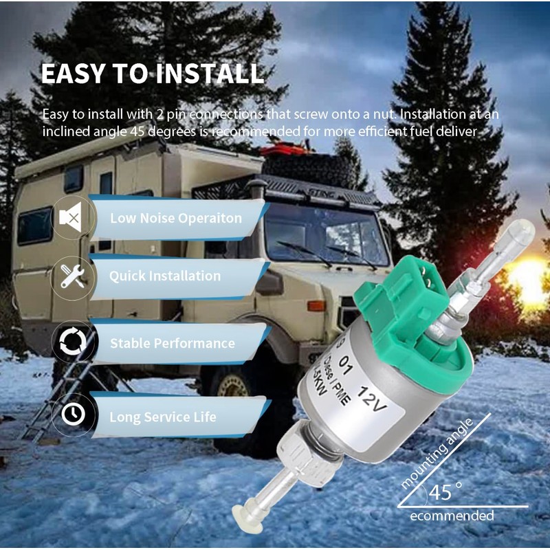 - Wide Compatibility:This fuel pump is compatible with a wide range of diesel heater brands and models, suitable for RVs, trucks, boats and other scenarios to meet the needs of different users.