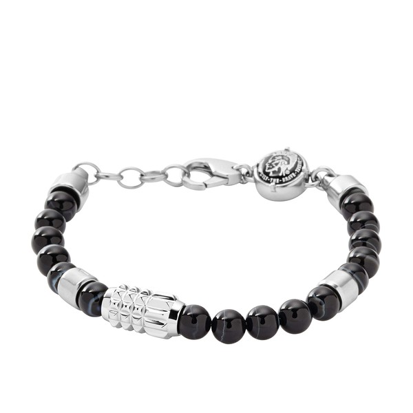 Diesel Men's Silver Stainless Steel Beaded Bracelet, One Size