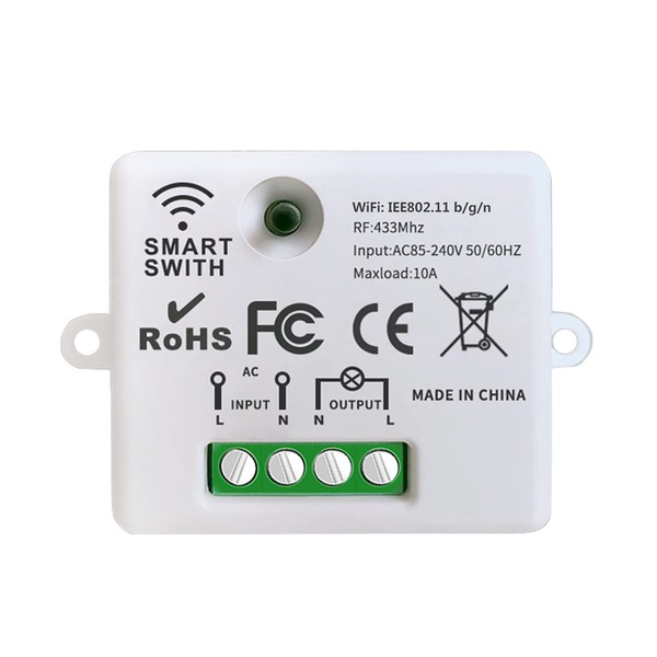 DieseRC Mini Wireless WiFi Switch, 2500W 10A RF Relay Remote Control Receiver, Smart Control by Phone via Tuya App, Compatible with Alexa/Google Home