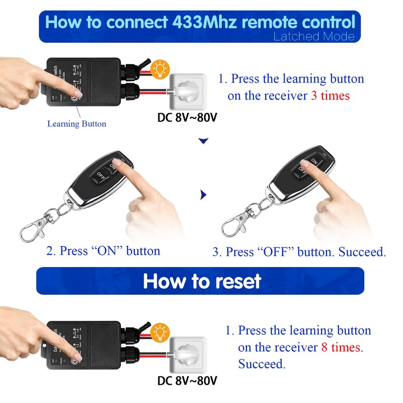 DieseRC Wireless Remote Control Switch, Waterproof, DC 12V 24V 36V 48V 30A Relay Receiver and 2 Transmitters Wireless Buttons for Lighting Water Pumps Household Appliances