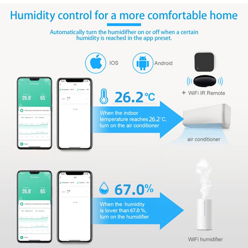 - Voice control: indoor wall temperature sensor works with Alexa, Google Assistant, supports Alexa and Google Home to ask for temperature and humidity: Alexa, what is the ambient humidity/temperature on the (device name)? Depending on the data source, you can perform many automated processes.