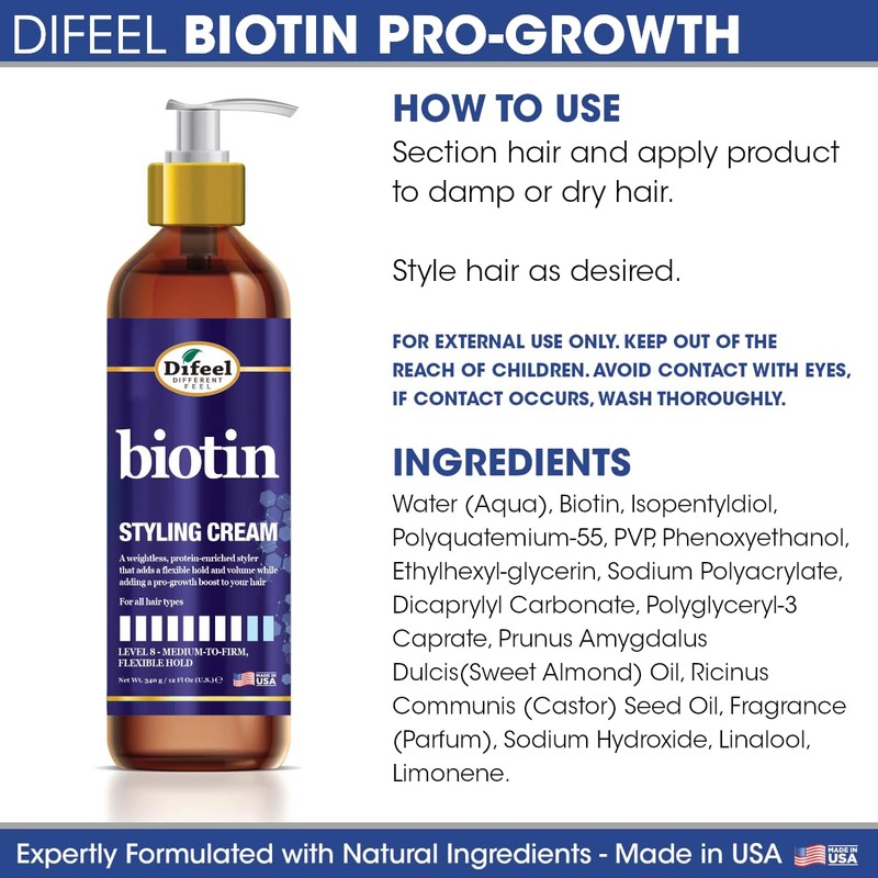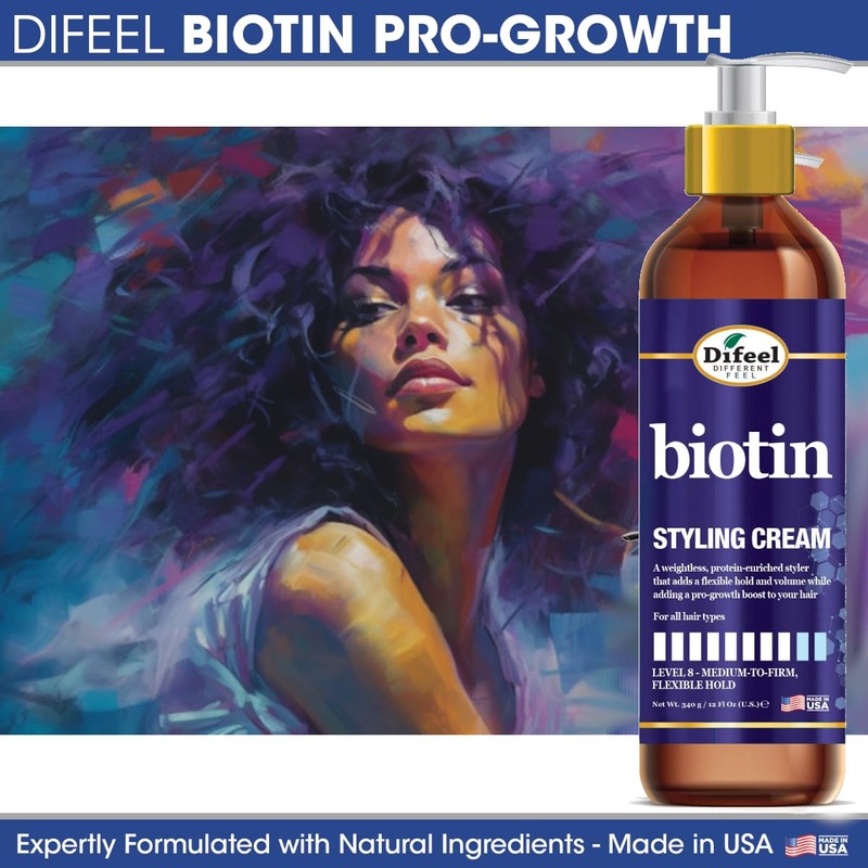 • BIOTIN CREAM FOR HAIR - Difeel Biotin Styling Cream is a weightless, protein-enriched formula designed to deliver flexible hold, boosted volume, and a healthy dose of pro-growth nourishment.