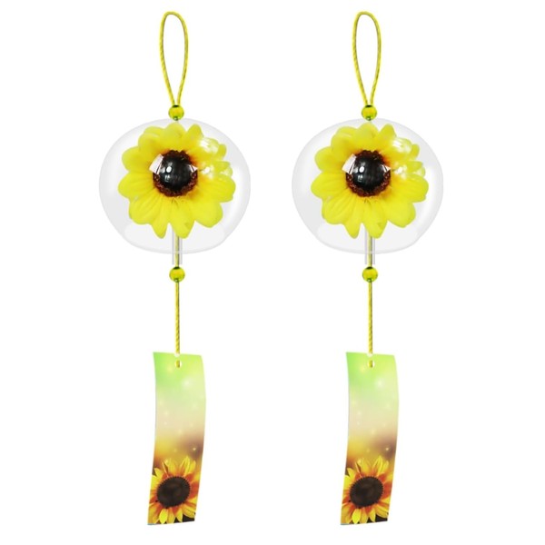 DIFEIUKI ガラス風鈴 花が入れ ひまわり風鈴 2個セット 澄んだ音 和風 おしゃれ 雰囲気作り 夏の風物詩 ウィンドチャイム インテリア 窓 ぶら下げ装飾 屋根飾り 誕生日 プレゼント おみやげ 短冊付き