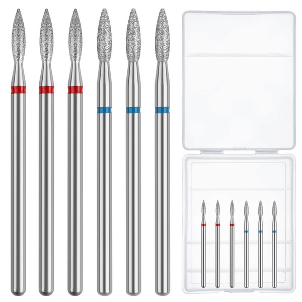 - Cuticle Nail Drill Bit Set:you will receive 6pcs flame shape russian manicure drill bits with1pcs storage case,3pcs medium and 3pcs fine diamond nail bit, can be used to removing stubborn cuticles and cleaning the nail bed,portable for home or salon use.