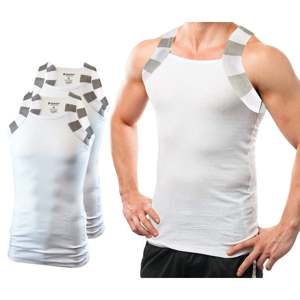 Different Touch 2 Pack Men Square Cut Two Tone Trim Tank Top (White & White, Large)