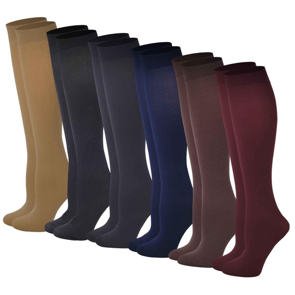 Differenttouch 6 Pairs Pack Women Opaque Stretchy Spandex Knee High Trouser Socks (assorted)