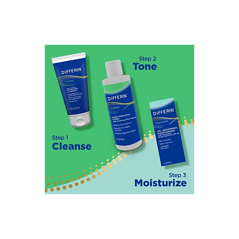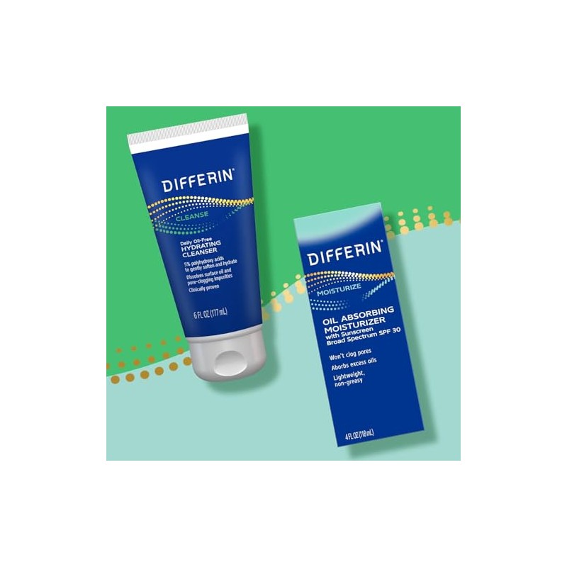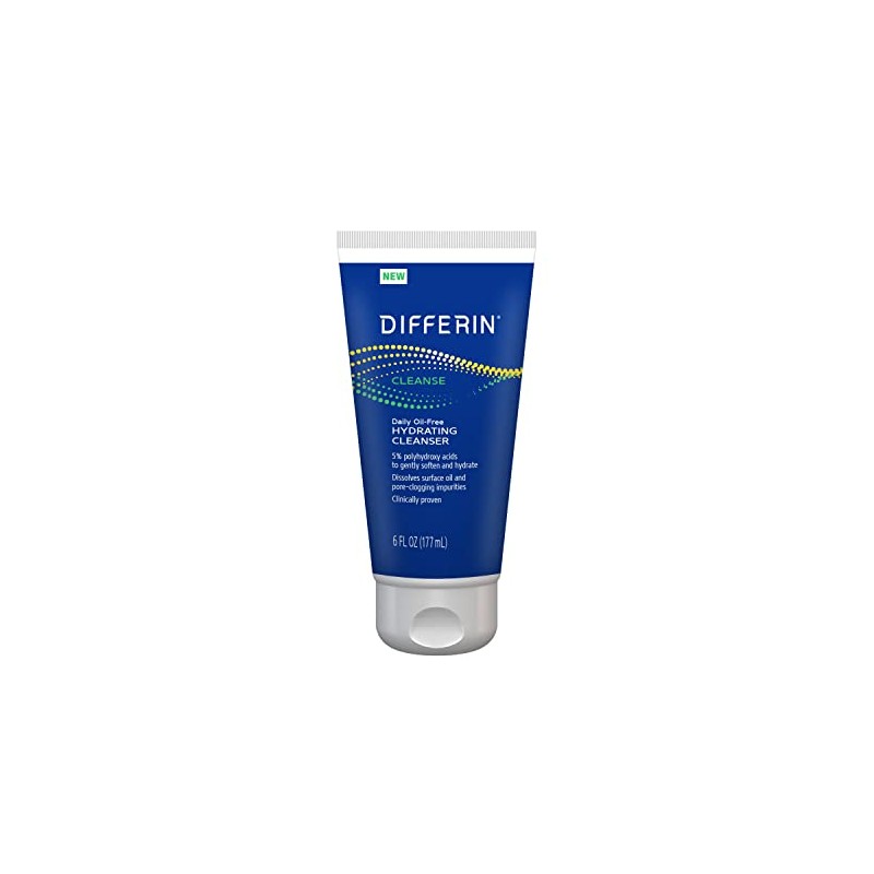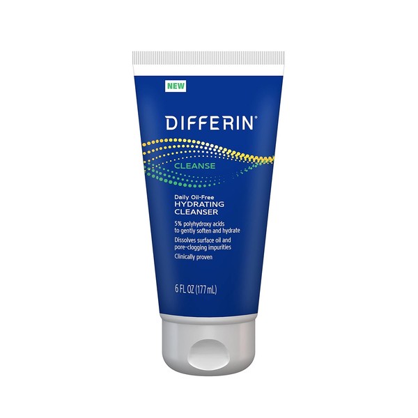 Differin Facial Cleanser, Daily Oil Free Hydrating Face Wash by the makers of Differin Gel, Gentle Skin Care for Acne Prone Skin, PHAs, 6 Oz.