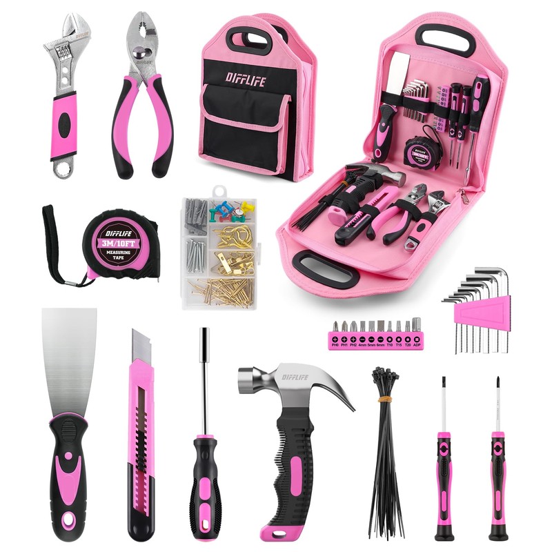 - DO IT HERSELF TOOLKIT: Take care of your living space by using this comprehensive collection of durable steel hand tools, featuring non-slip handles for comfortable grip and precision during screwdriving, hammering, installation, and assembly tasks