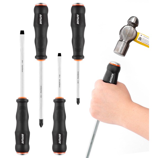 - 🛠️Hammerable Screwdriver: Extra tough Pound-through blade is designed to withstand hammering, preventing splintering of screwdriver handle or blade.