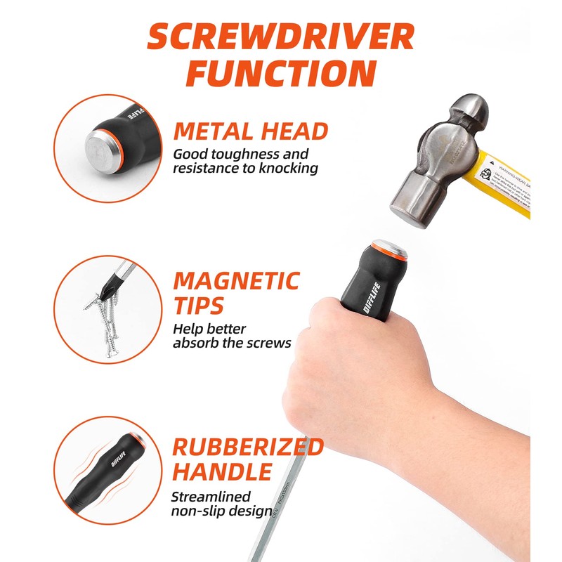 - 🛠️Hammerable Screwdriver: Extra tough Pound-through blade is designed to withstand hammering, preventing splintering of screwdriver handle or blade.