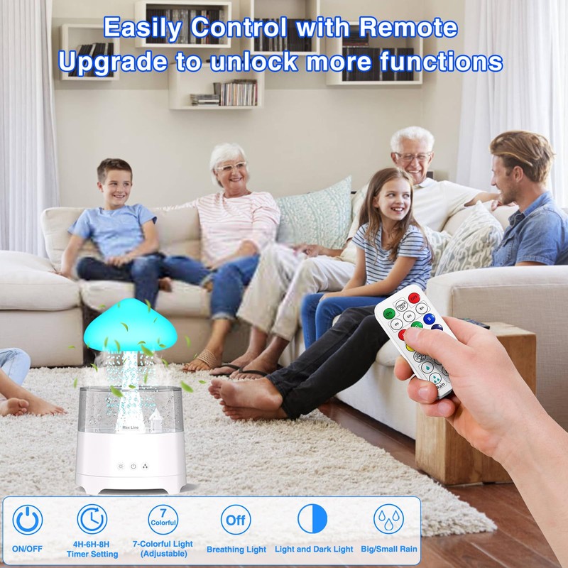 - Idea Gift for Everyone This rain cloud humidifier is a thoughtful present, like the pattering rain on the forest leaves. People will enjoy the peaceful of life by the sound of raindrops.