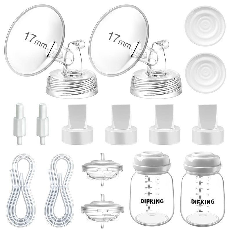 Complete Replacement Kit for Spectra Breast Pumps This kit includes essential components for Spectra pumps: 2 Flanges (17mm), 4 Duckbill Valves, 2 Backflow Protectors, 2 Diaphragms, 2 Tubes, and 2 Wide-Mouth Bottles. Designed to be compatible with Spectra S2, S1, 9 Plus, Synergy Gold, and Synergy Gold Portable breast pumps. Engineered for Compatibility These parts are designed to be interchangeable with Spectra pump components, offering performance that aligns with OEM standards. Suitable for replacing Spectra Flanges, Duckbill Valves, Backflow Protectors, Tubings, and Wide-Mouth Bottles. Multiple Flange Sizes for a Better Fit The kit includes 17mm flanges, with additional sizes available (15mm to 30mm), allowing you to choose the size that best suits your needs for a more comfortable pumping experience. Practical Design for Everyday Use The DIFKING bottles feature screw lids with sealing rings to help prevent leaks, making them suitable for travel or storage. The bottles can also be repurposed as snack containers or tumblers, adding versatility to their use. Safe and Reliable Materials Made from BPA-free, food-grade materials, these parts are designed to meet safety standards for products in contact with breast milk, ensuring peace of mind for you and your baby.