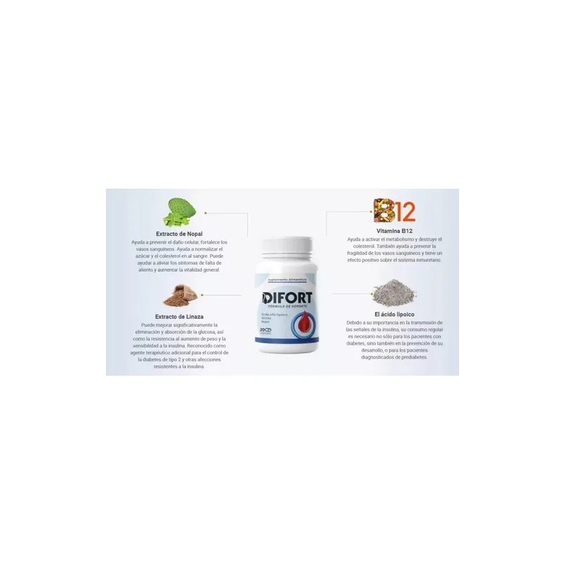 Difort es un suplemento diseñado especialmente para apoyar el control saludable de los niveles de azúcar en la sangre, ayudándote a mantener un balance óptimo ⚖️💙🌿.