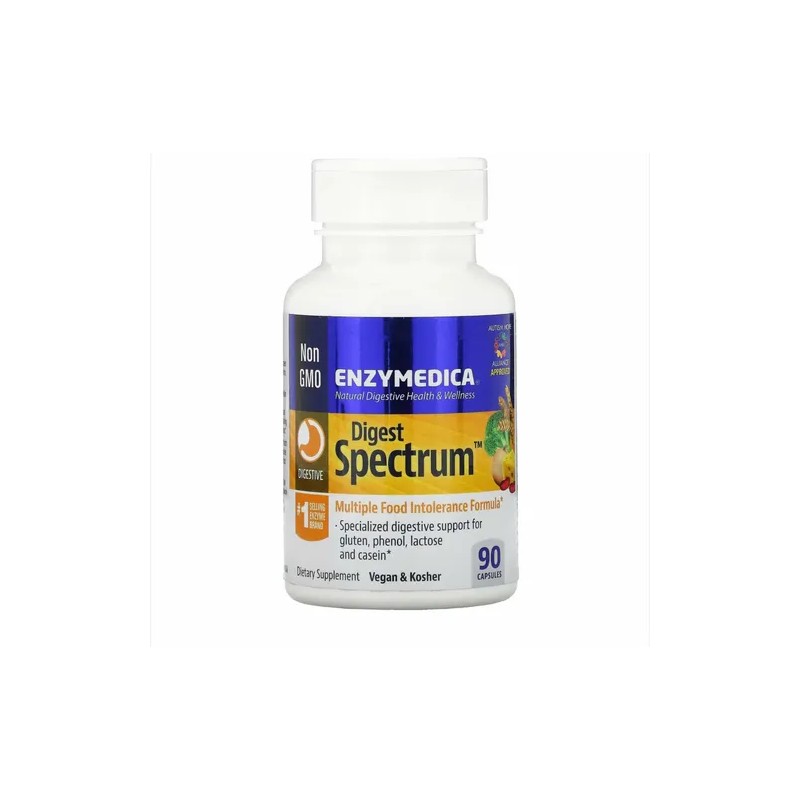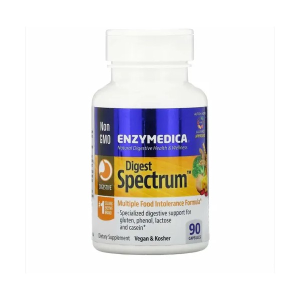 🌿 Digest Spectrum™ de Enzymedica es una fórmula avanzada diseñada para brindar un apoyo digestivo integral, ideal para personas con intolerancias alimentarias comunes. Su potente combinación en cada cápsula permite descomponer alimentos complejos como proteínas, grasas, carbohidratos, fibra, gluten, lactosa y caseína 🍞🥩🥗.