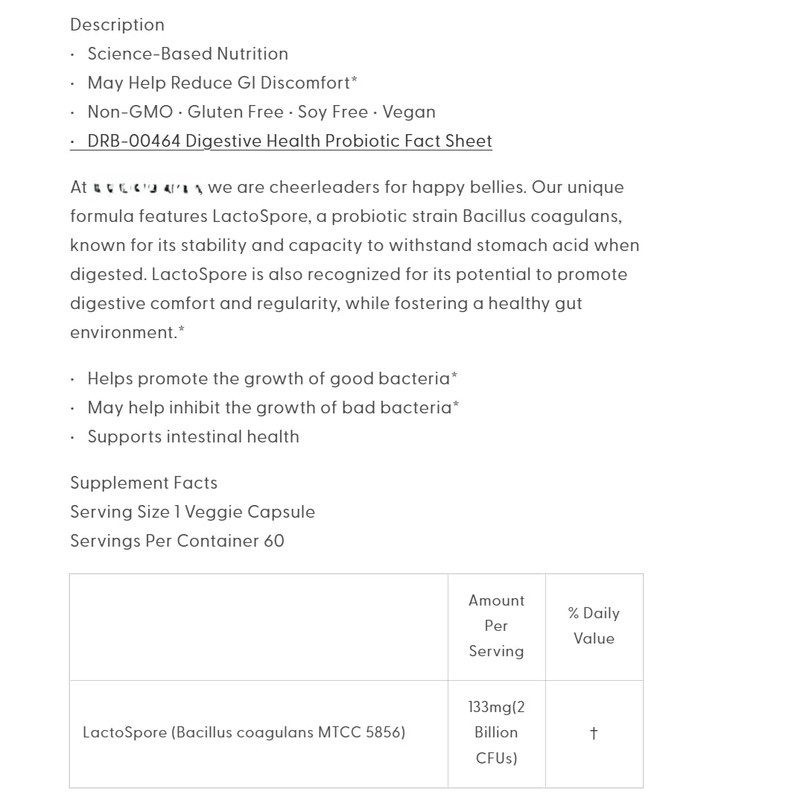 Digestive Health Probiotic 2Billion CFUs, Non-GMO, Vegan, Gluten Free, Soy Free, 60 Veggie Caps